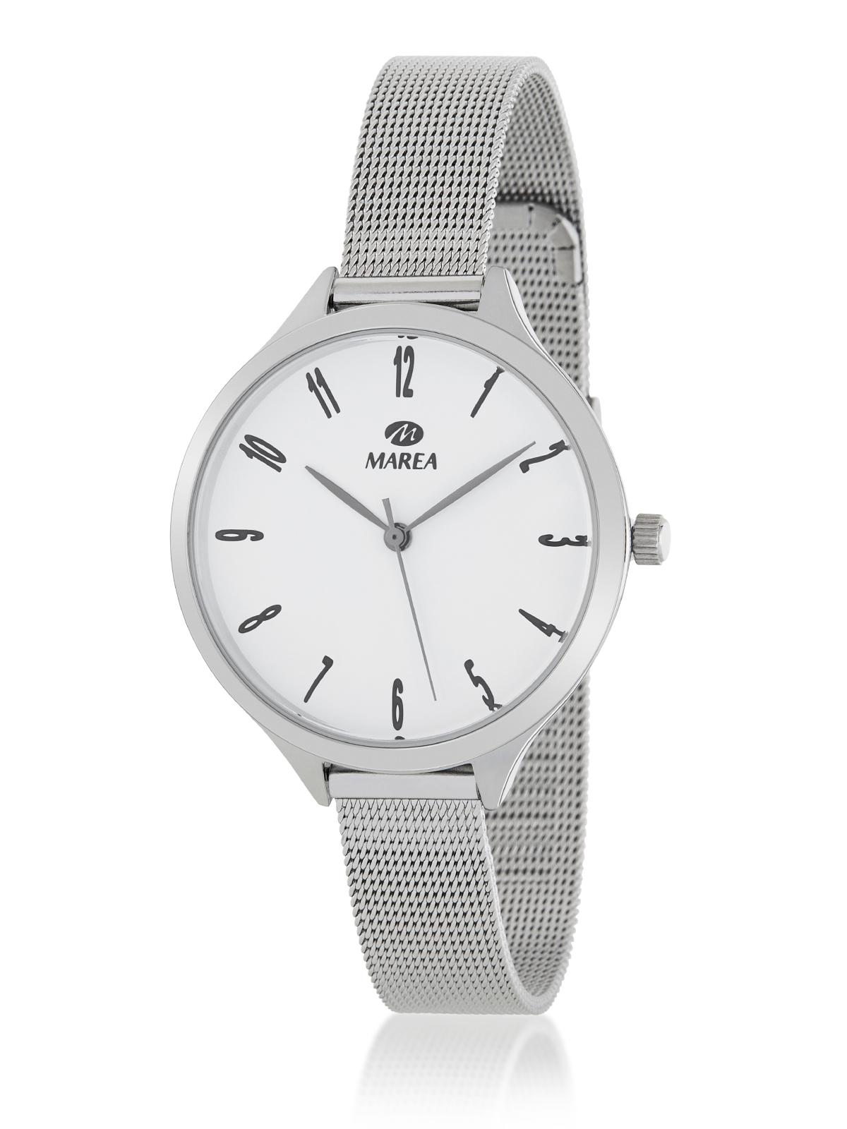 Movimiento japonés: 3 agujas Diámetro Caja: 36 mm. Material Caja: Metal Material Brazalete: Acero Esfera: Color blanco Resistente al agua: 3 ATM