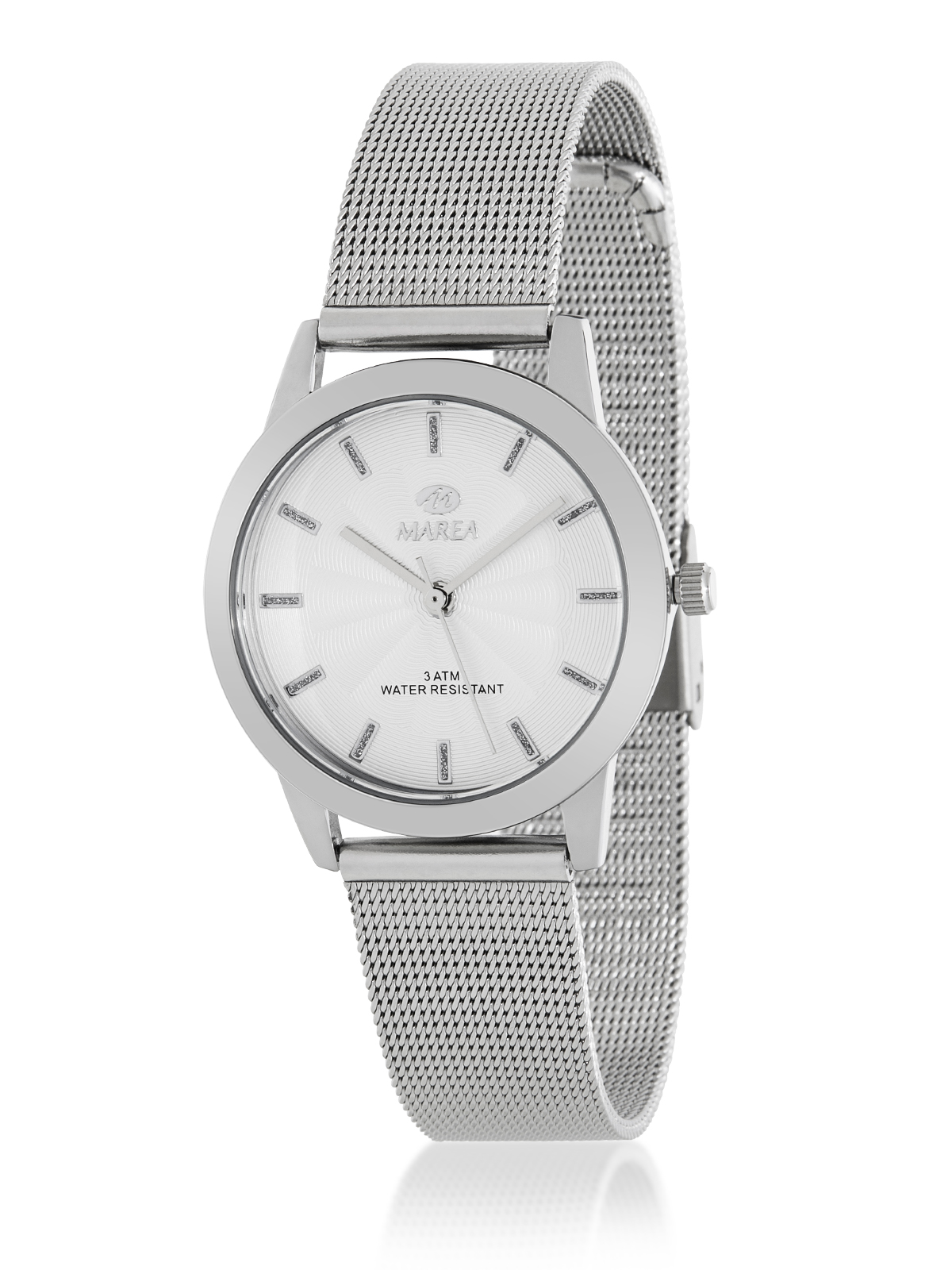 Movimiento japonés: 3 agujas Diámetro Caja: 32 mm. Material Caja: Metal Material Brazalete: Acero Esfera: Color blanco Resistente al agua: 3 ATM