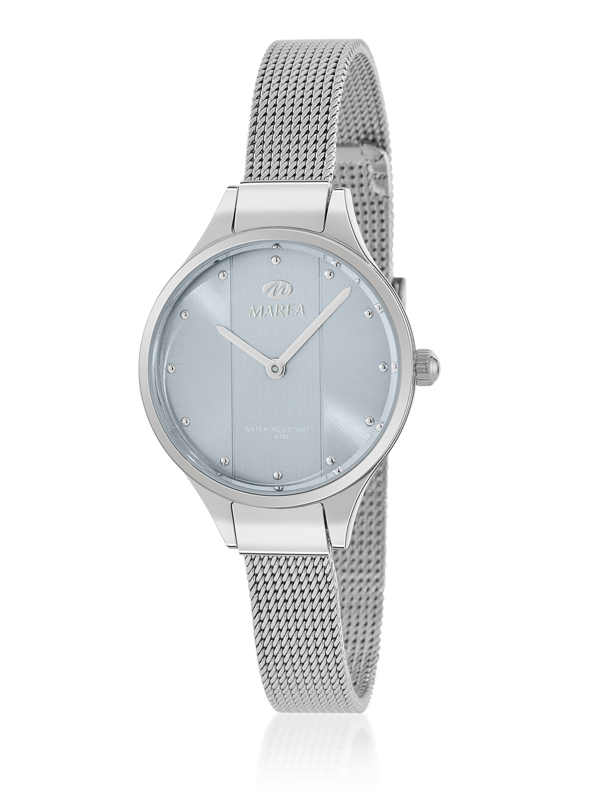 Movimiento japonés: 2 agujas Diámetro Caja: 30 mm. Material Caja: Metal Material Brazalete: Acero Esfera: Color gris Resistente al agua: 3 ATM